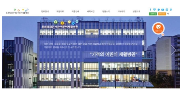 넥슨 게임 이용자들이 선택한 기부처는 푸르메재단 넥슨어린이재활병원입니다. 이 병원은 의료 서비스 취약 계층인 장애아동을 위해 2016년에 개원한 국내 최초 통합형 어린이재활병원으로 재활 의료 서비스를 제공하고 있습니다.